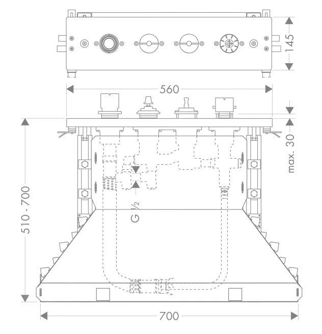 Basisgarnituur voor 4-gats badrandkraan met thermostaat voor montage op sokkel