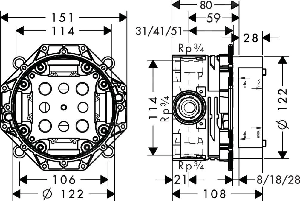 - Geschikt voor alle afdeksets voor inbouw douche- en badkranen en -thermostaten