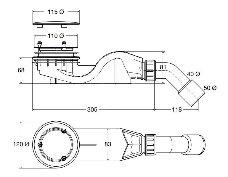 BetteSolid 50 zijafvoer voor douchebak