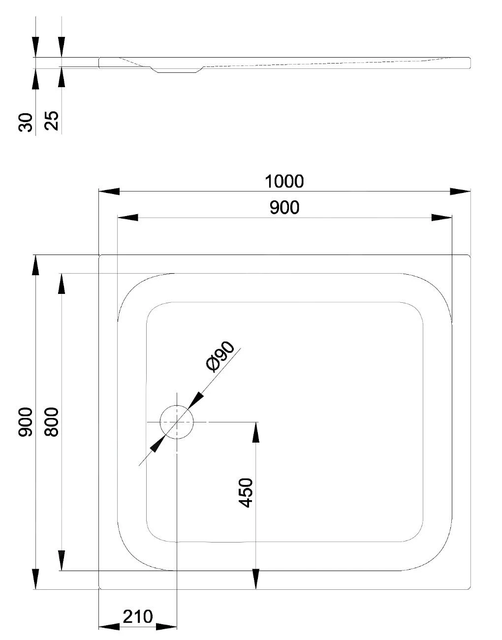 - afvoer: Ø 90 mm