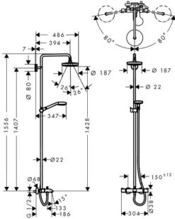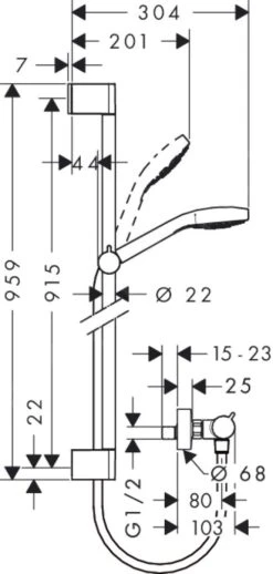Hansgrohe Crometta – Showerpipe E 240 Doucheset Met Thermostaat, EcoSmart 9 L/min, Chroom 27281000