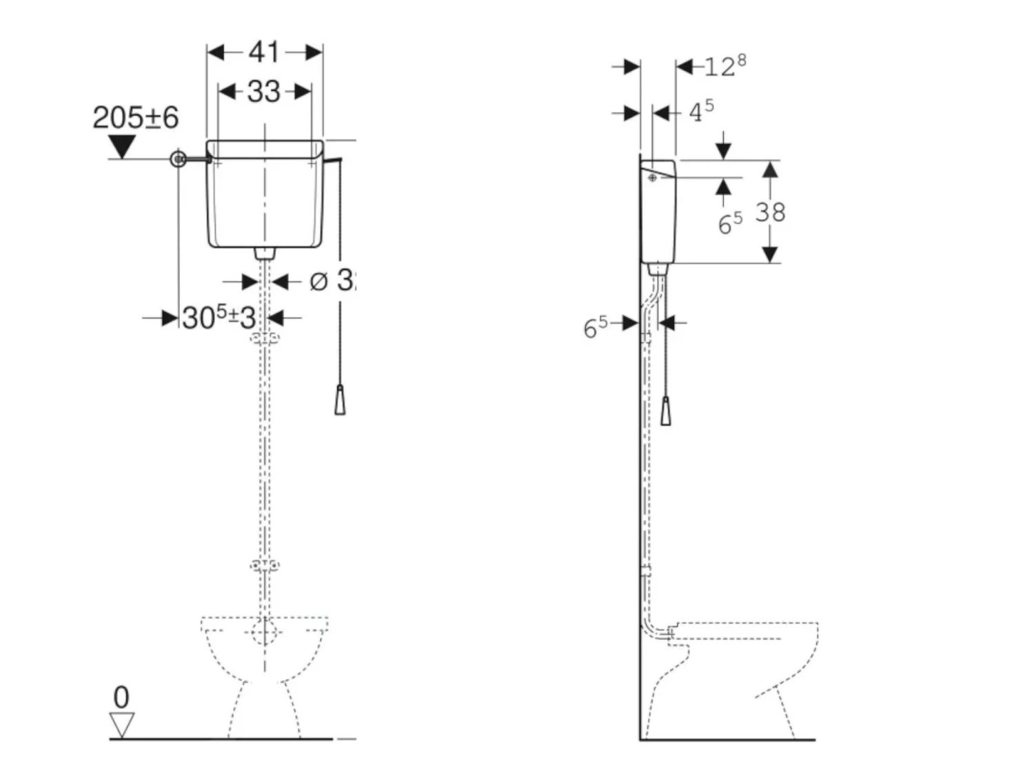 - aansluiting van de spoelbuis met klemschroefverbinding