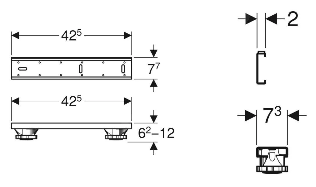 - afmetingen 425 x 73 x 62 – 120 mm