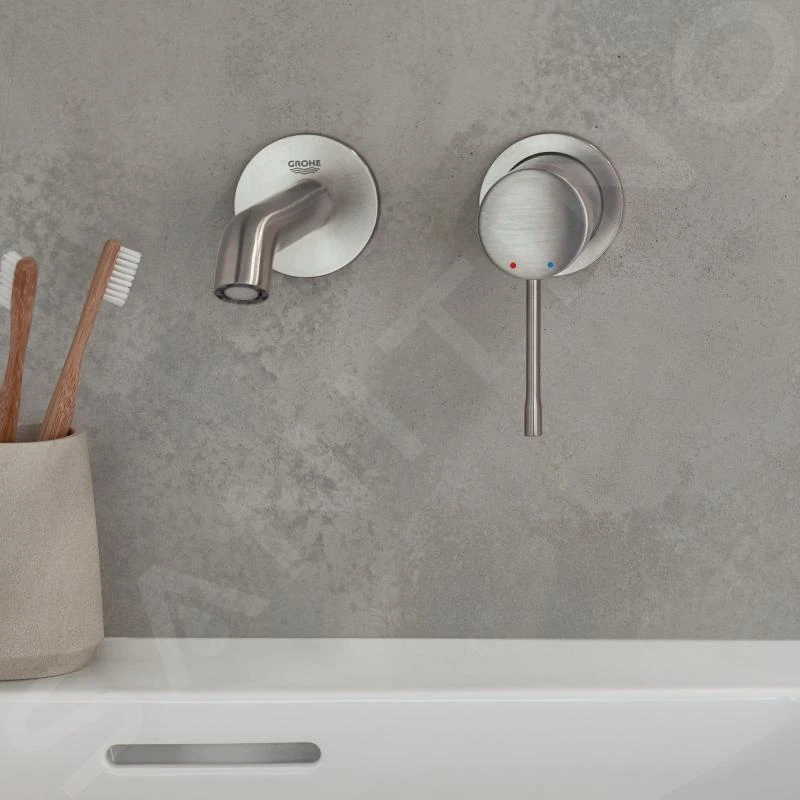 Stoer, hip én functioneel. Deze strakke inbouw wastafelkraan van GROHE geeft je badkamer in no-time een eigendaagse look. De kraan is afgewerkt in de stoere supersteel waardoor het oppervlak een aantrekkelijke matte look krijgt. Deze speciale afwerking is onderhoudsvriendelijk, krasbestendig en ziet er jarenlang prachtig uit.