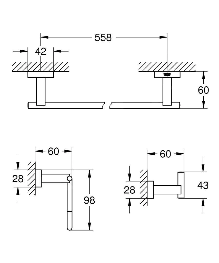 - Handdoekhouder, 558 mm (40 509 001)
