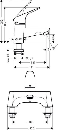 - voor thermostatische opbouw douche- en badkraan met hartafstand van 150 mm