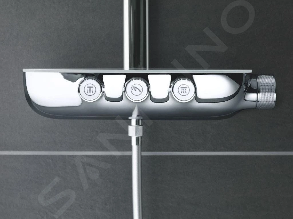 Het bedienen van de doucheset middels de thermostatische kraan is eenvoudig en intuïtief. Je stelt de watertemperatuur eenvoudig in met de ene knop en de straalintensiteit met de andere. Eenvoudiger kan dat niet! De GROHE SafeStop-veiligheidsfunctie voorkomt dan onaangename verbrandingen door de temperatuur niet hoger dan 38 ˚C laten oplopen. Voor je veiligheid verder zorgt de GROHE CoolTouch-technologie, hiermee worden de oppervlakken nooit te heet. Een praktische toevoeging is zeker en vast de GROHE EasyReach-douchetray, waarmee je favoriete wasmiddelen en cosmetica binnen handbereik hebt. Voor meer geniet zorgt de krasbestendige StarLight chroom afwerking, waardoor alle oppervlakken jarenlang stralend blijven. Bovenop, de GROHE EcoJoy waterbesparende functie draagt bij aan het milieu. Kies voor het GROHE SmartControl douchesysteem en geniet van pure Duitse perfectie.