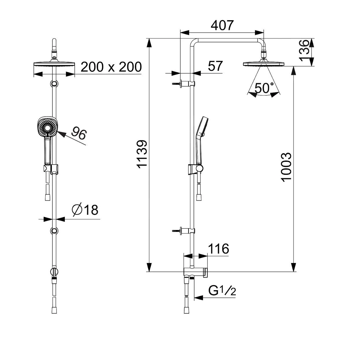 - hoofddouche 200 x 200 mm, 1 straalsoort – regen