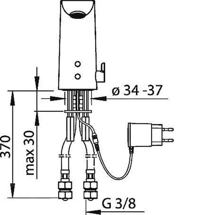 - aansluiting 2 drukslangen: G 3/8 (met vuilzeef)