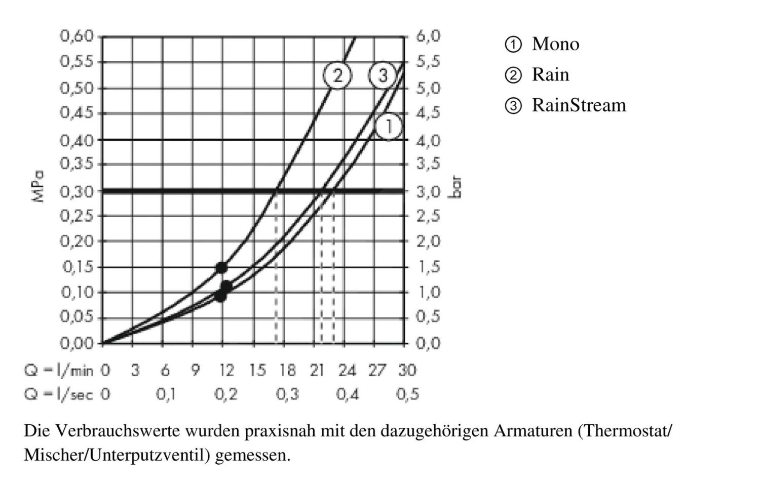 - doorstroming bij RainStream (bij 0,3 MPa): 22 l/min
