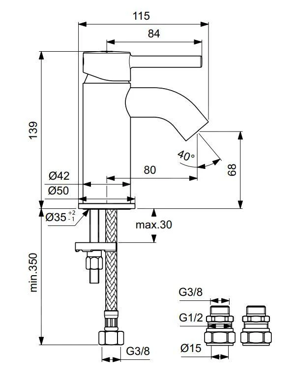 - kraanhoogte 139 mm