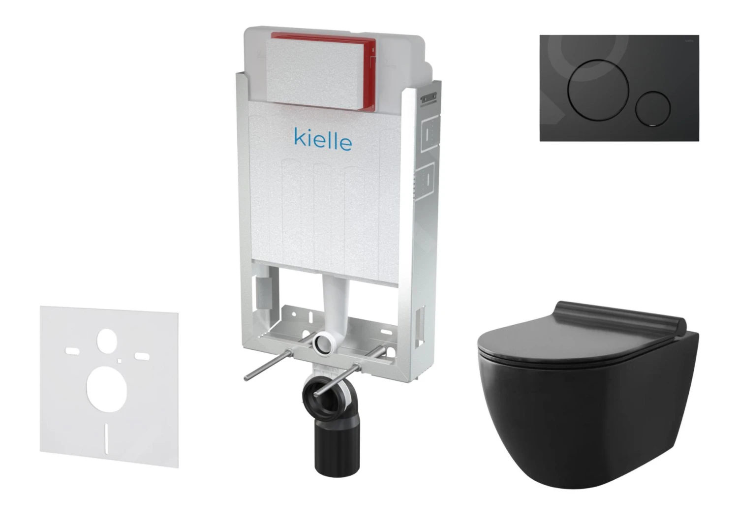 - kielle Gaia keramisch hangend toilet met toiletbril softclose, mat zwart