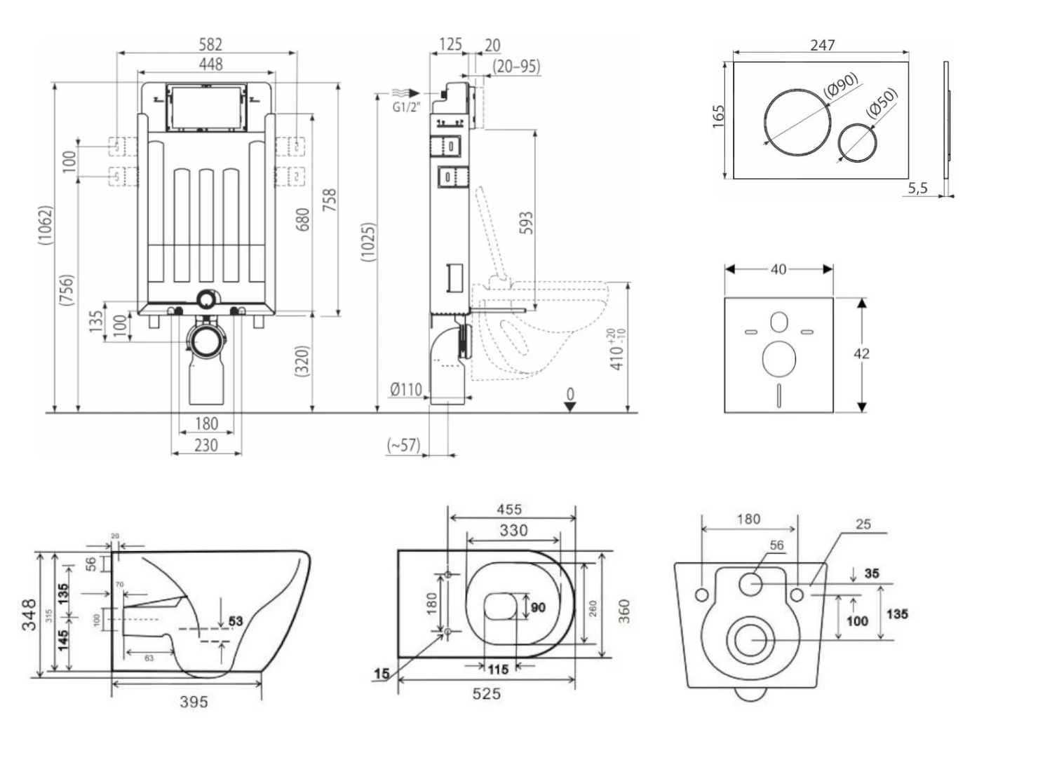 - Bevestigingsset voor het bevestigen van de toiletpot: draadstang M12 – 2 st., sluitringen – 4 st., afdekdoppen – 2 st., moeren – 2 st., draadbeschermers – 2 st.