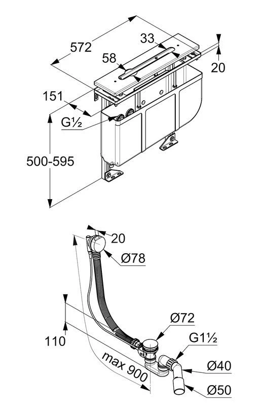 Afvoerset en inbouwdeel voor 3-gats badrandcombinatie