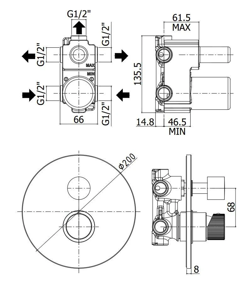 Inbouw badkraan, 3 uitgangen