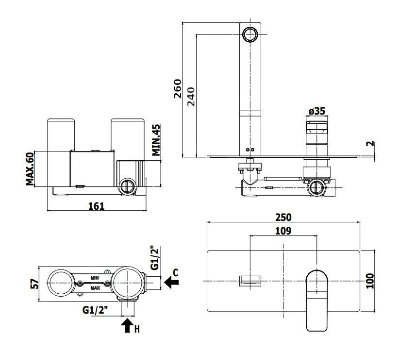 Installatie op inbouwdeel (wordt bij de kraan meegeleverd).