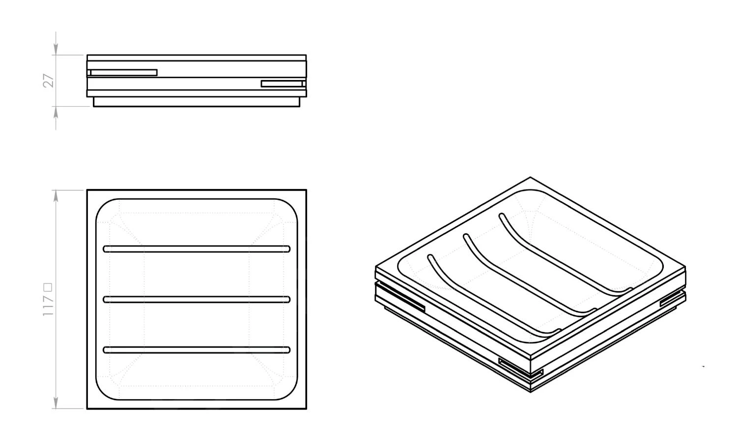 - afmetingen 117 x 27 x 117 mm