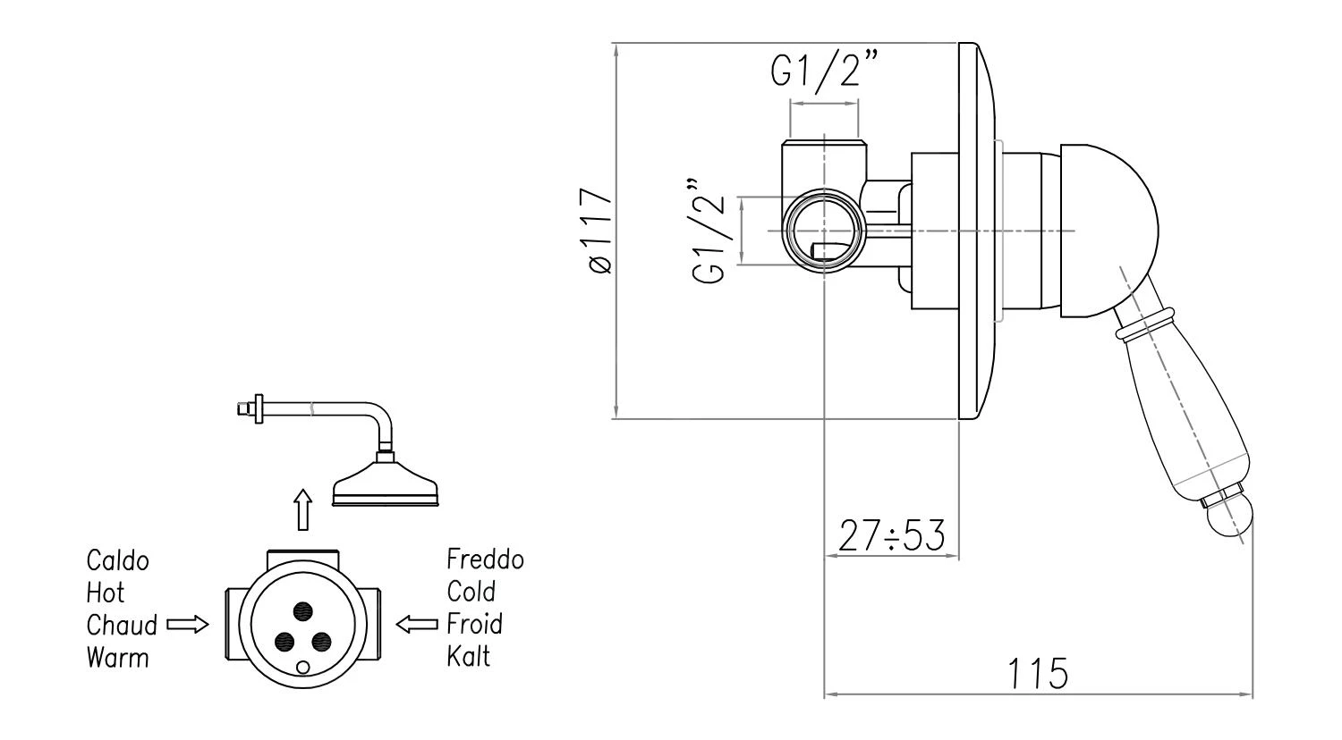 - aansluiting op bijv. hand- of hoofddouche mogelijk
