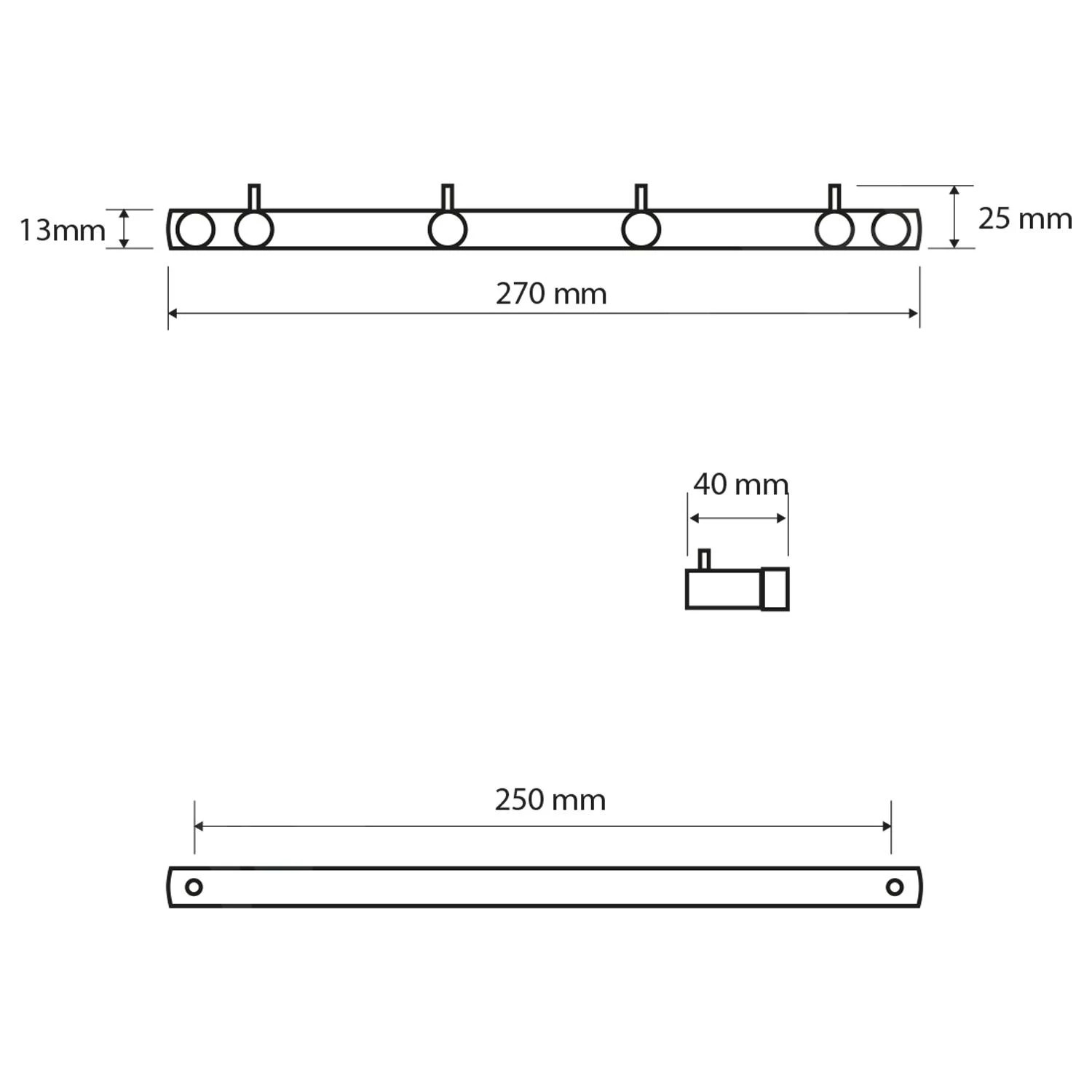 - afmetingen 270 x 25 x 40 mm