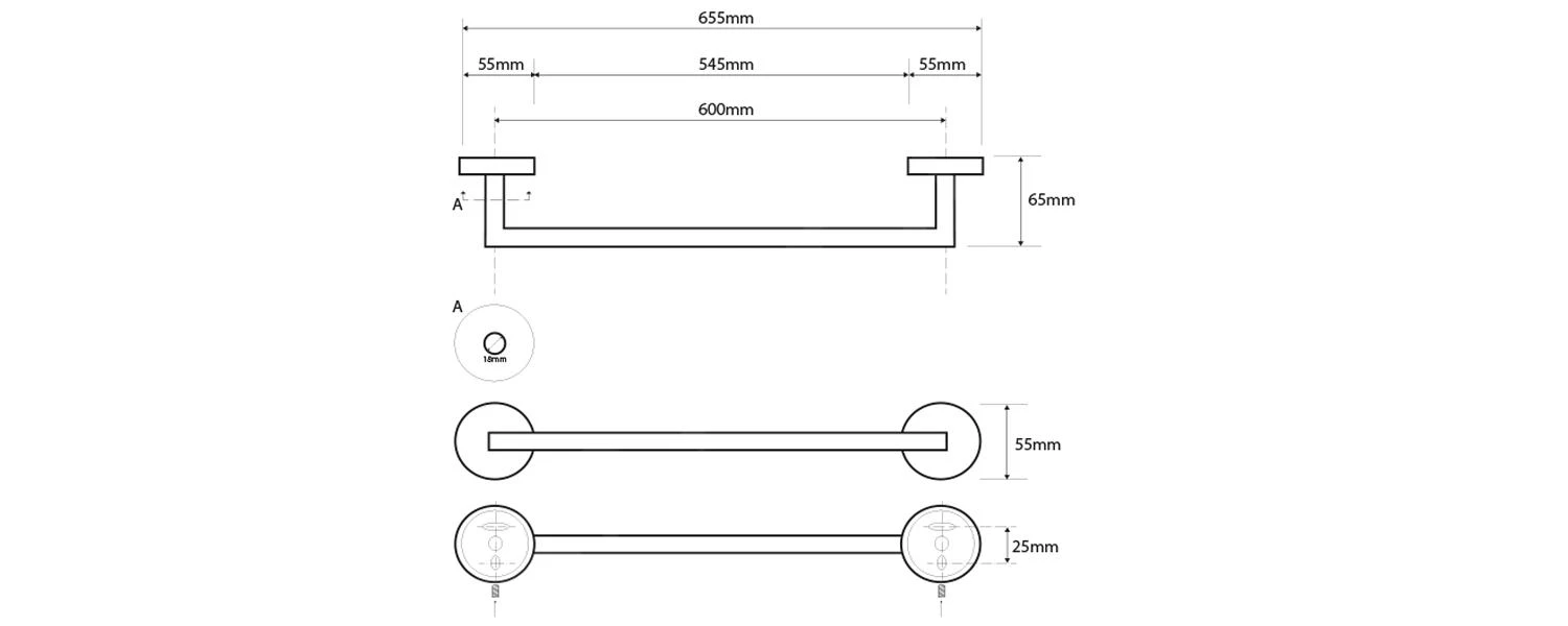 Nimco Nava – Handdoekrek,lengte 450mm, Mat Zwart/chroom NA 28046D