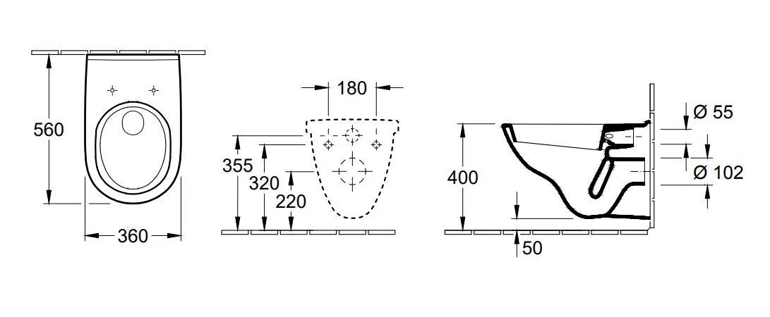 - wandcloset met horizontale afvoer, diepspoel