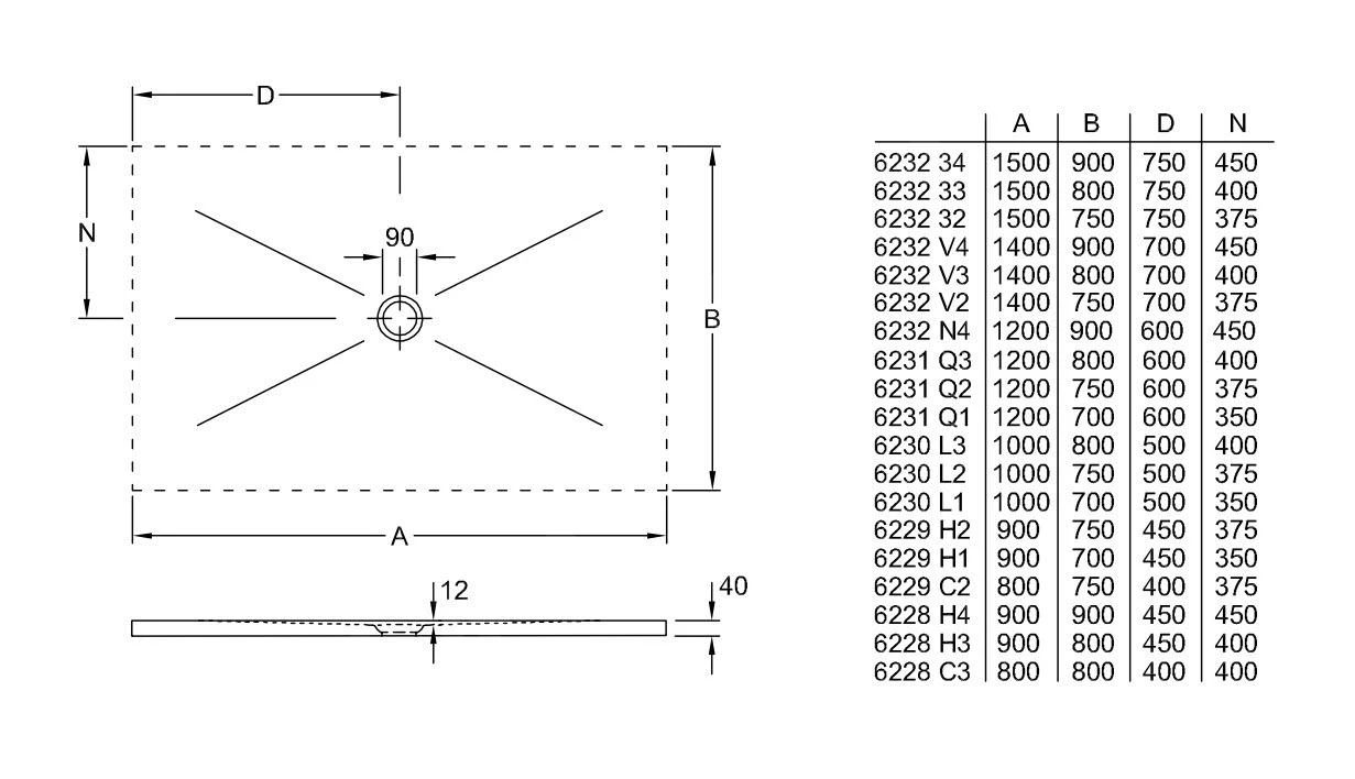 - de douchebak is afgezaagd aan alle 4 zijden (niet geglazuurd)Â
